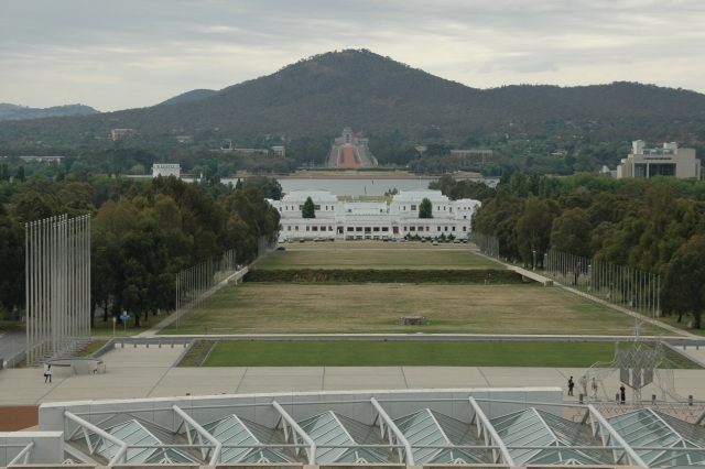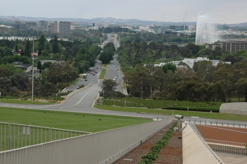 The above picture was taken from the top of the new Parliament house and shows how nicely this building is aligned with the old Parliament house and the war memorial entirely at the back. The scene is very similar to Washington DC with its similar center alignment.